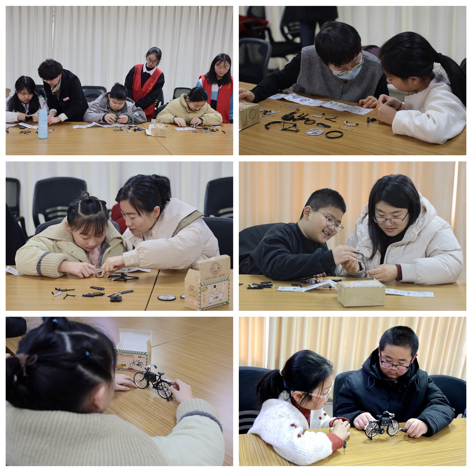 2月11日上午,我馆开展“以手造物 以物寄情”手作课。活动现场,我馆工作人员向孩子们普及了自行车的发展史,分享了孔繁森与他自行车的小故事,讲解了文创产品“二八大杠自行车”拼装注意事项。孩子们参照成品模型,在志愿者的指导帮助下,认真细致地拼装着自行车。大家各自发挥想象力和动手能力,不时的相互交流,探索自行车的结构与组装原理,在大家的巧手下,零散的部件逐渐汇聚成一辆辆精致的自行车模型,现场气氛热烈。